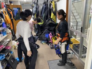 プール講習2回目からドライスーツでの講習になります。